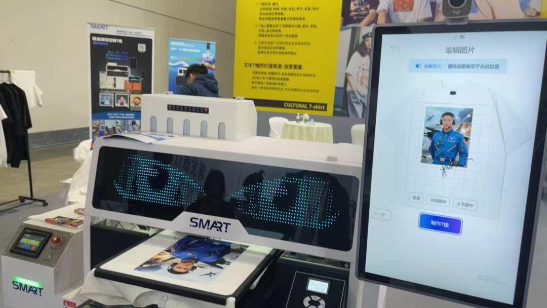 智能革命:谦牧数科展示了其自主研发的智慧T恤一体机。该设备通过AI设计以及全链路无缝执行,将传统服装生产流程转化为高效精准的用户体验模式,为纺织数码印花领域的数字化转型领先国际水平注入了扎实的中国创新元素。